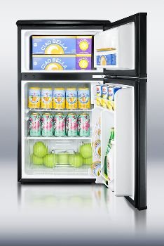ENERGY STAR qualified compact two-door refrigerator-freezer in 19 inch width and black exterior Feature
